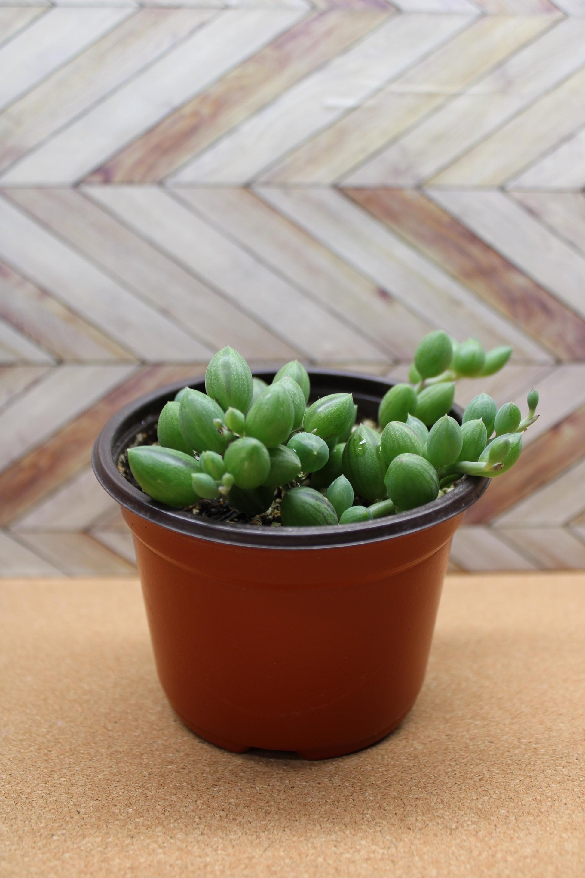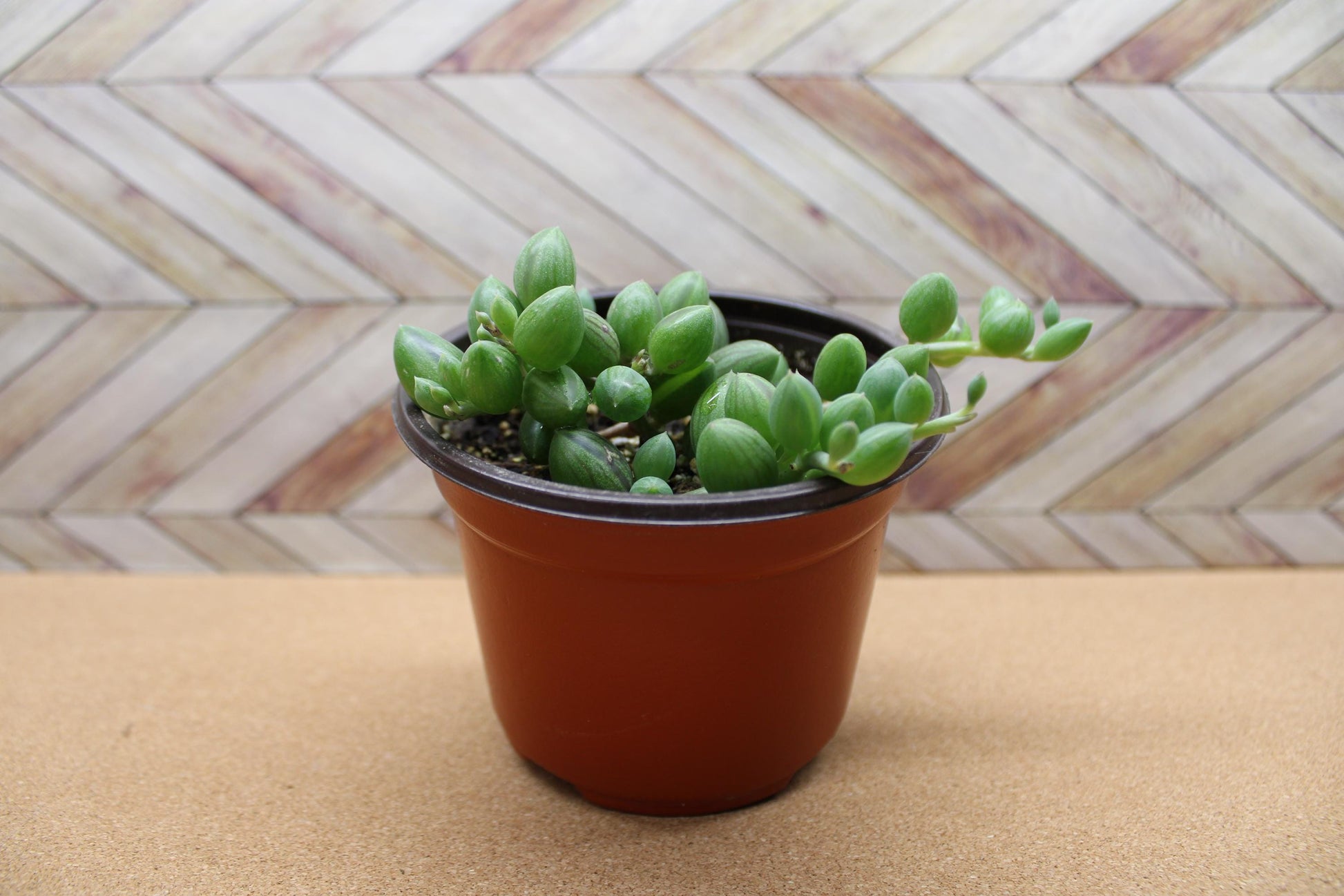 Introduce a touch of whimsy to your plant collection with the String of Watermelons. This captivating succulent features trailing vines adorned with plump, oval leaves marked by delicate, watermelon-like stripes. Its cascading growth habit makes it an ideal choice for hanging baskets, shelves, or as a charming accent in any indoor space. Make it a special gift for that plant lover in your life by selecting the clay pot option.