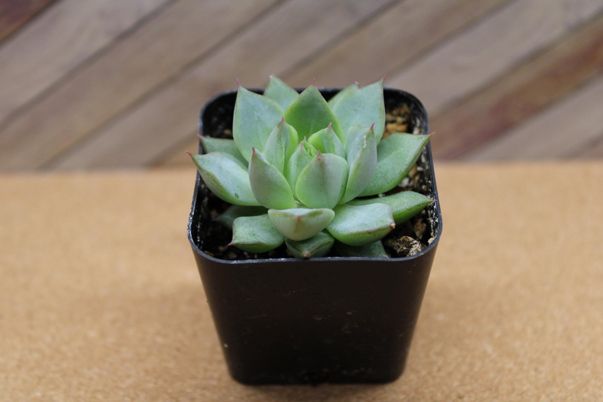 Meet Echeveria purpusorum ‘Gliva’ — a stunning little stunner with dense, pointed leaves and a deep green hue dusted with red freckles. This compact beauty has a unique sculptural vibe that sets it apart from the more common rosette styles.